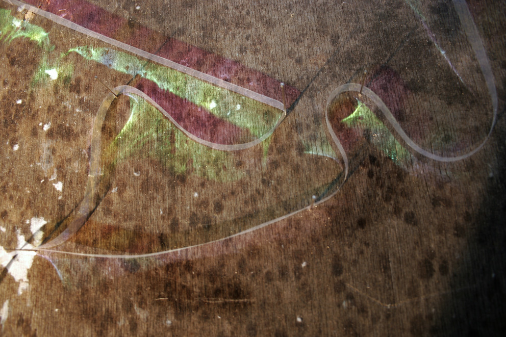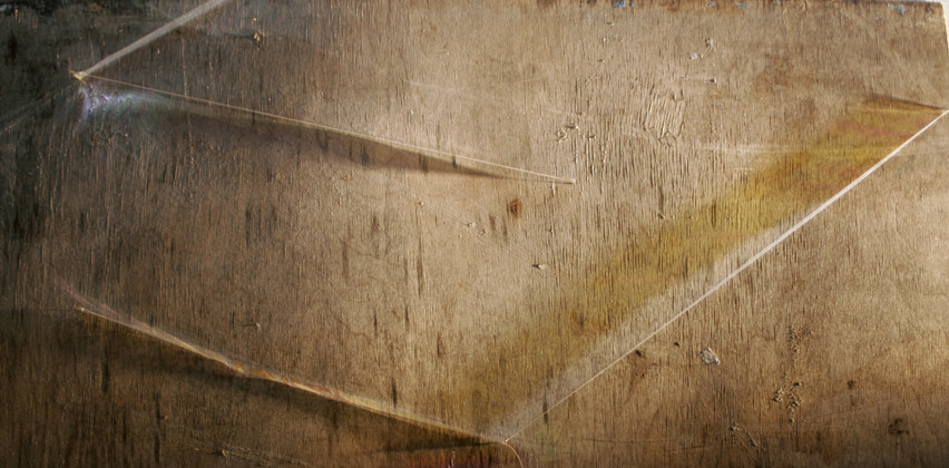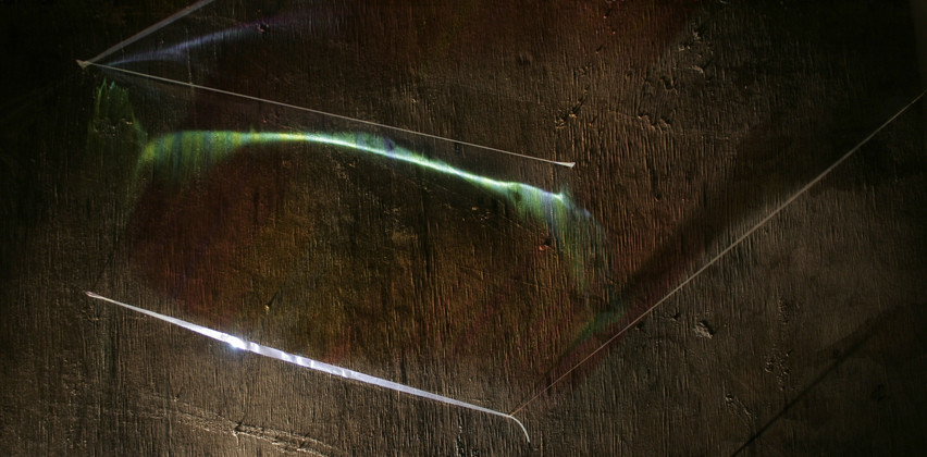 geometrical lightsare flat Installations made of iridescent foils on wooden boards, that change their colours and shapes due to the directions of the spot light. Emerging Artist at Art Fair, Messehallen, Hamburg, Germany, 2015