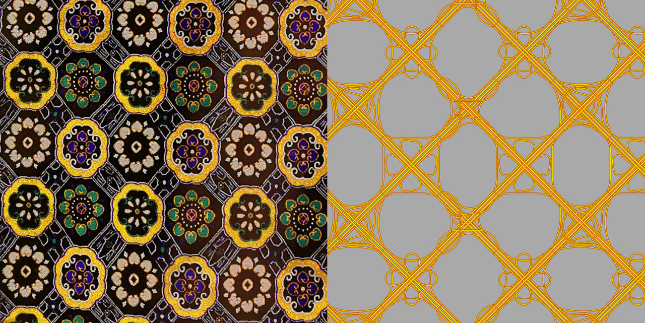 Shu embroidery symobolizes one of the most prosperous periods in China. Originally, colorful traditional patterns such as plum and hibiscus flowers, were supposed to bring good luck and happiness. We changed this pattern with 4 Chengdu’s interchanges with the appereance of navigation apps.