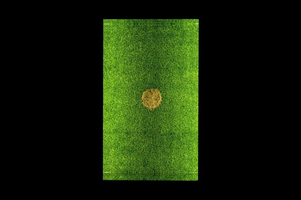 The supposed natural circle, which is enclosed by the artificial turf, withers slowly. Finally, when one considers that the lawn itself is no longer a purely natural, wild-growing element, but is actually a product developed by humans, the extent may becomes clearer.