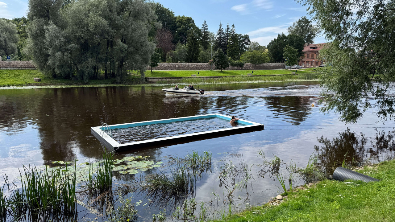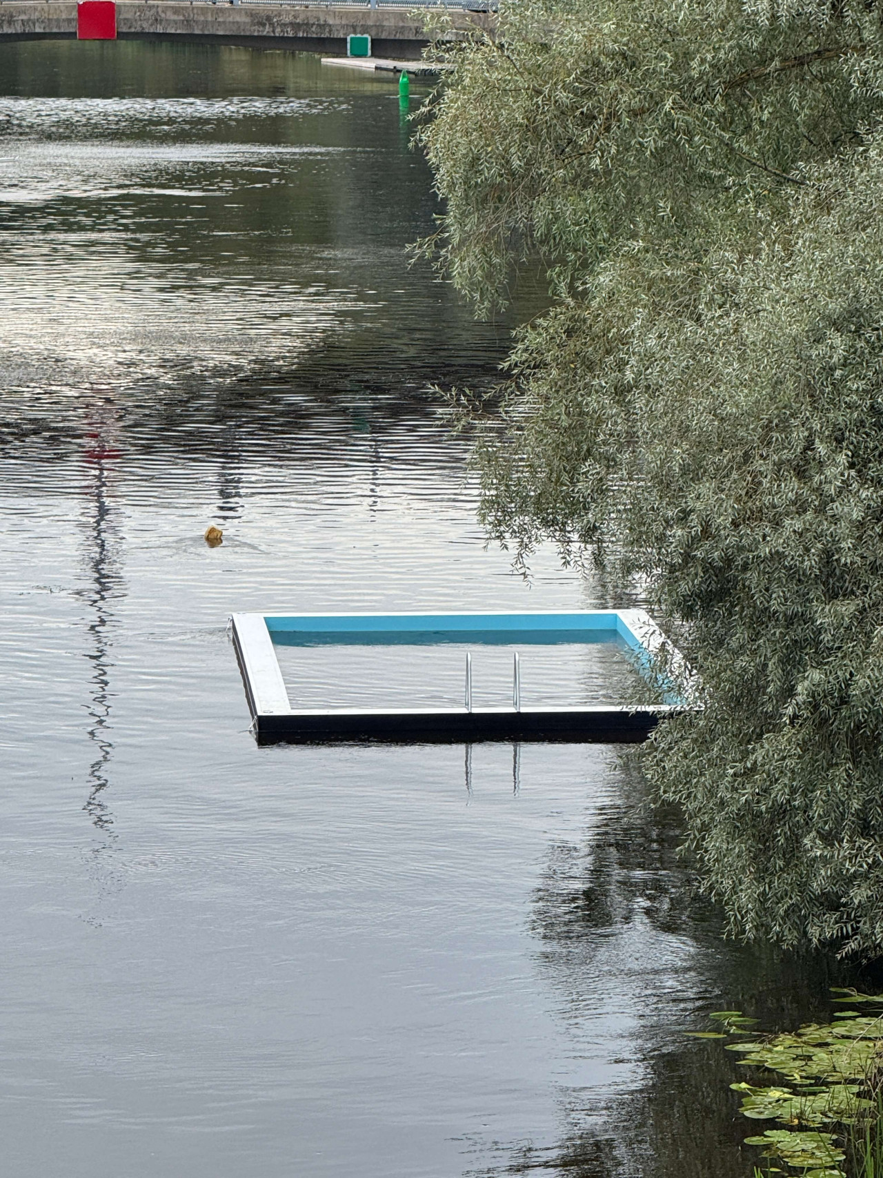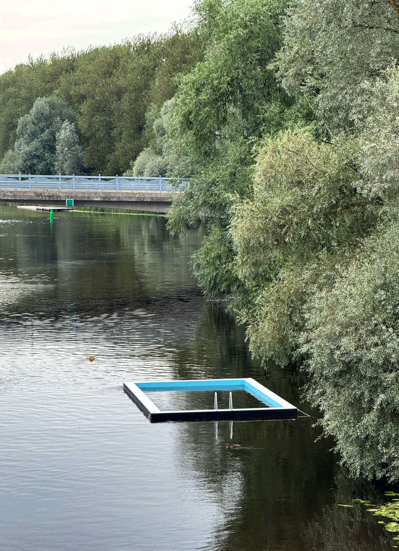 The installation POOL II consists of an 8 x 4 meter floating frame that formally references the image of a swimming pool. The work playfully explores the perception and interpretation of public space, addressing the human need for clear, comprehensible structures. At the same time, it points to the fact that our ideas of space and its boundaries are shaped and defined by social and cultural concepts and framings.
