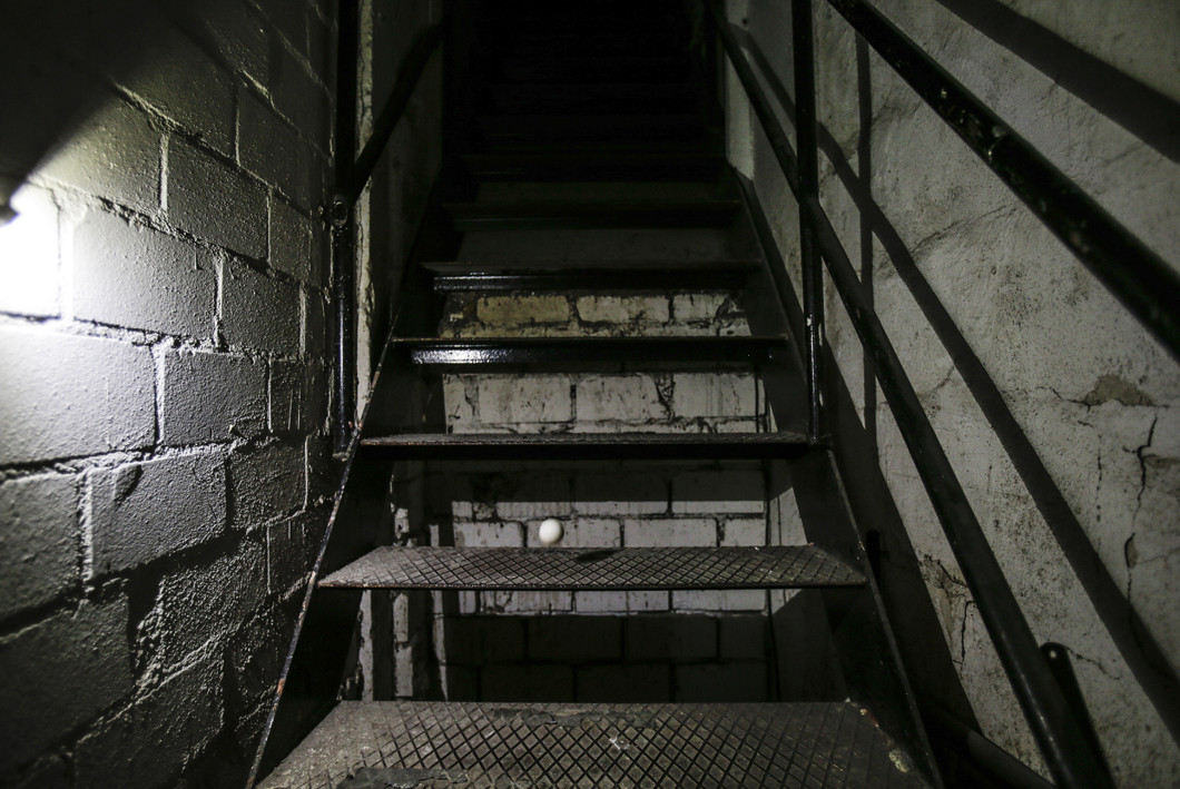 Installation at Kapriole, Hamburg, Germany 2012. Rotating motor, ping pong and thread.