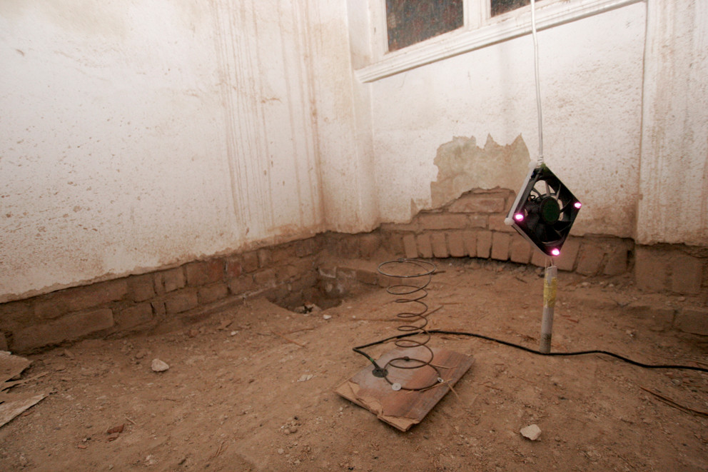 Kinetic Installations that responds to external and internal vibrations, using a solenoid and contact microphone. Shown at the exhibition: The rectangle in its natural environment, temporary Gallery, Leipzig, Germany