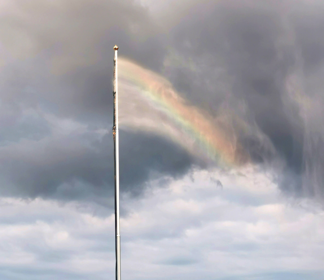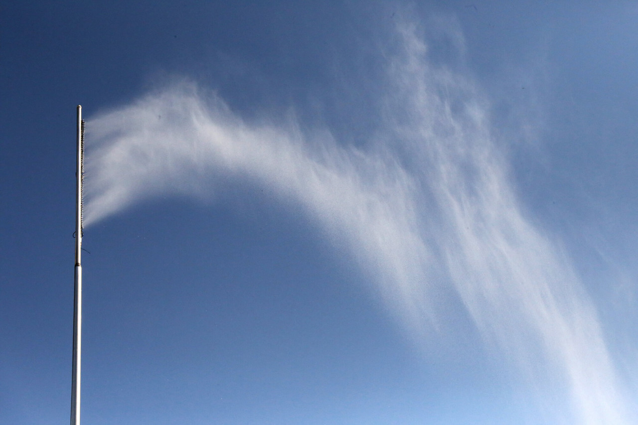 Similar to specific colors or ornamental symbolism on flags (red for socialism/communism, crescent moons for Islamic states, crosses for Christian, the rainbow for diversity and tolerance, etc), the flag created from water spray can be interpreted for life itself.