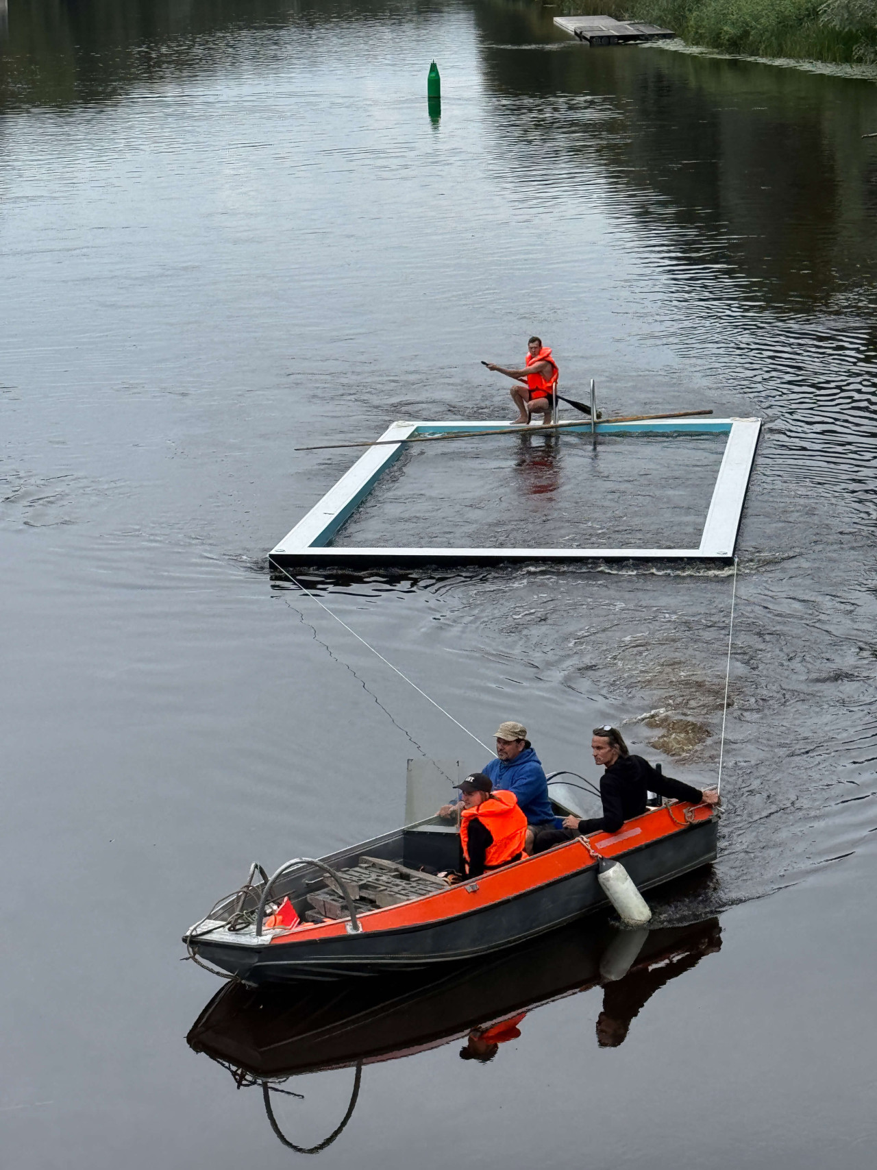 The installation POOL II consists of an 8 x 4 meter floating frame that formally references the image of a swimming pool. The work playfully explores the perception and interpretation of public space, addressing the human need for clear, comprehensible structures. At the same time, it points to the fact that our ideas of space and its boundaries are shaped and defined by social and cultural concepts and framings.