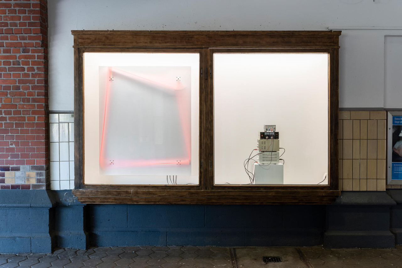 Showcase harburg train station. It is part of the exhibition: highway=footway;layer 1, at “Kunstverein Harburger Bahnhof”,